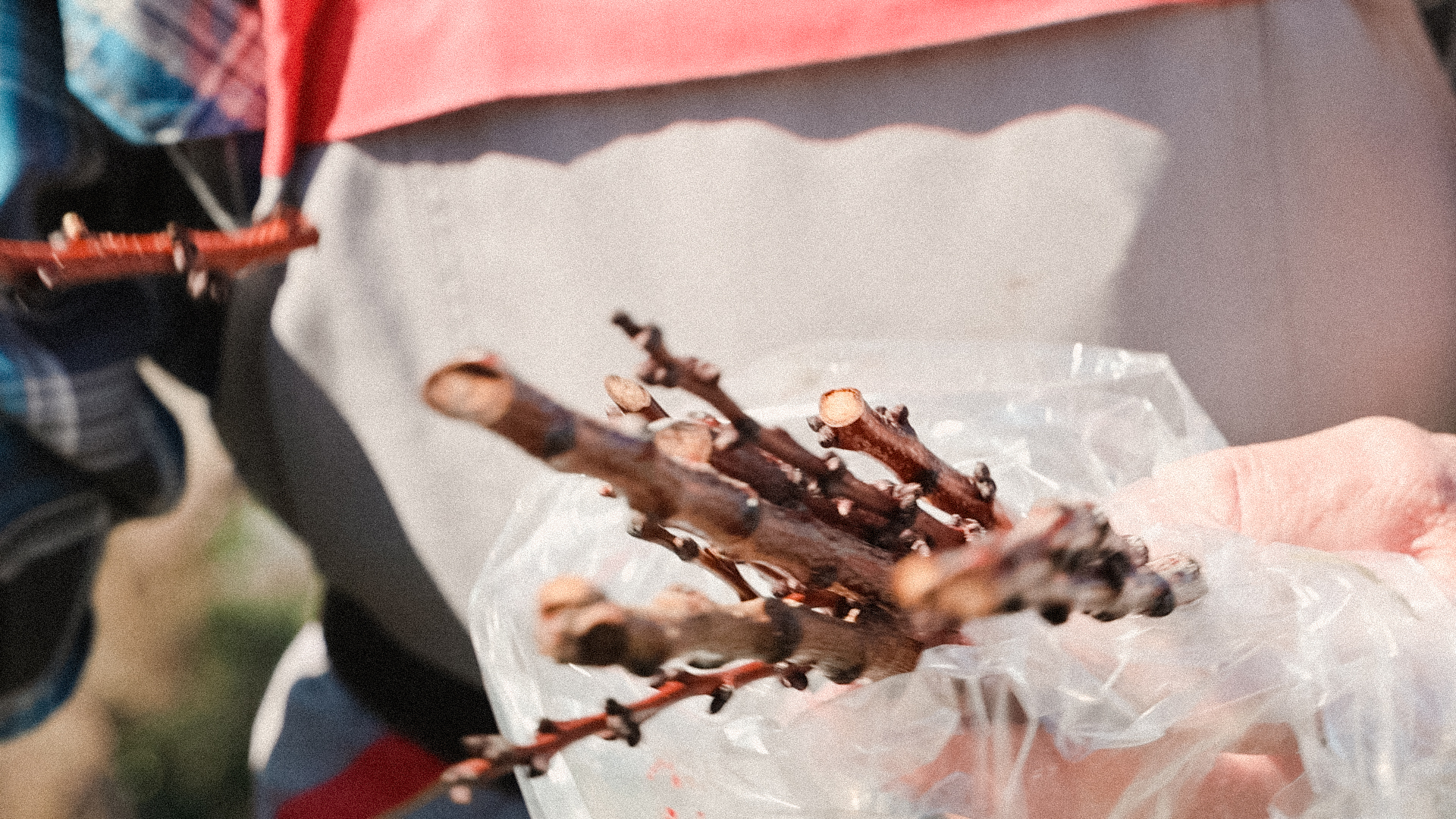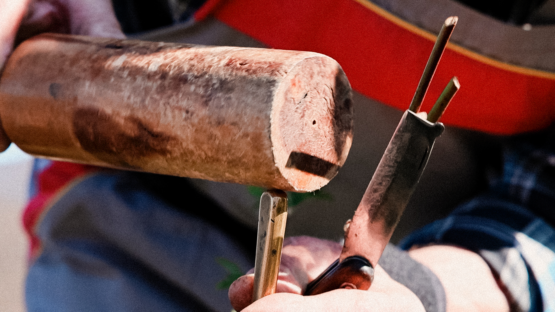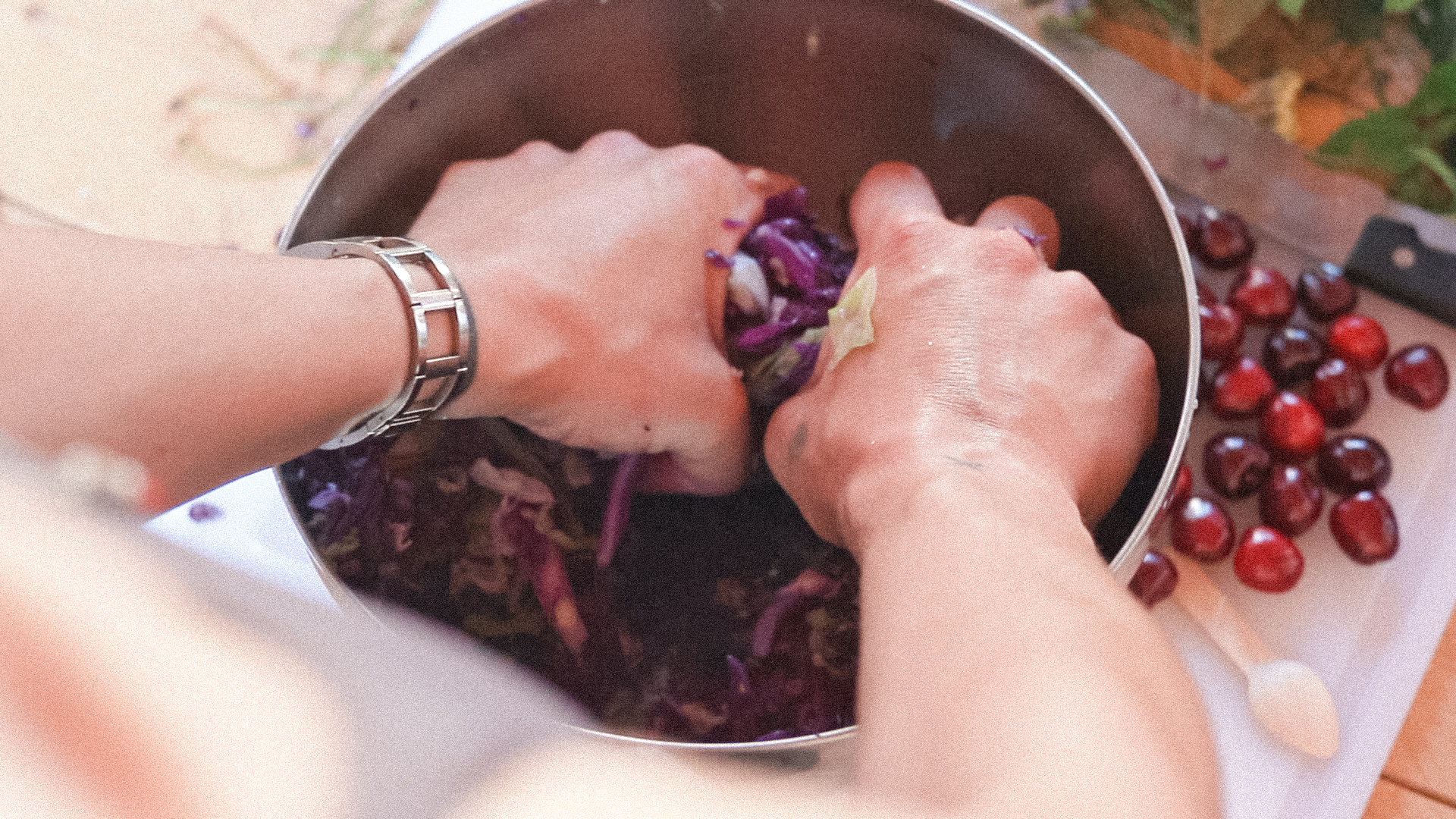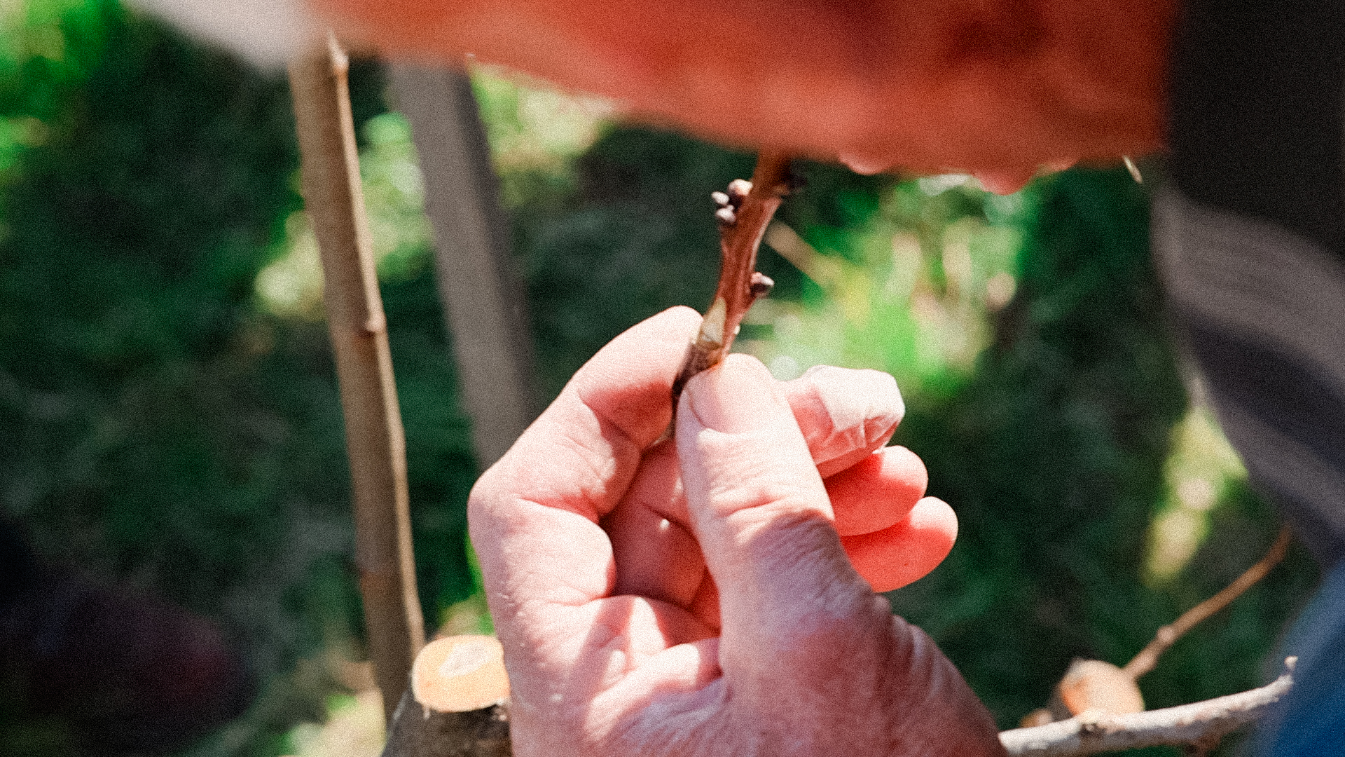 E così, a poco a poco, è stato assemblato un archivio video per Uncommon Fruits. Il carattere di ogni video varia a seconda dell’azione documentata. A volte assomigliano a tutorial, come quando Jože Krečič ha dimostrato come il legno verde possa essere spaccato da una lama affilata in Grafting / Innestare / Cepljenje, o quando Alessia Beltrame ha reso tangibile il momento in cui le verdure salate rilasciano la salamoia in Wild Fermentation / Fermentazione selvatica / Divja fermentacija. Il montaggio, in questi e altri casi, privilegia ciò che è stato catturato sul posto. Così, tutti i suoni circostanti compongono un’atmosfera spontanea, che ricorda lo stato d’animo collettivo dei partecipanti quando i loro gesti sono stati filmati.